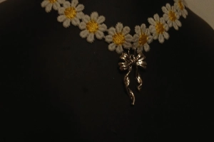 Choker handmade cu flori și fundă – accesoriu delicat